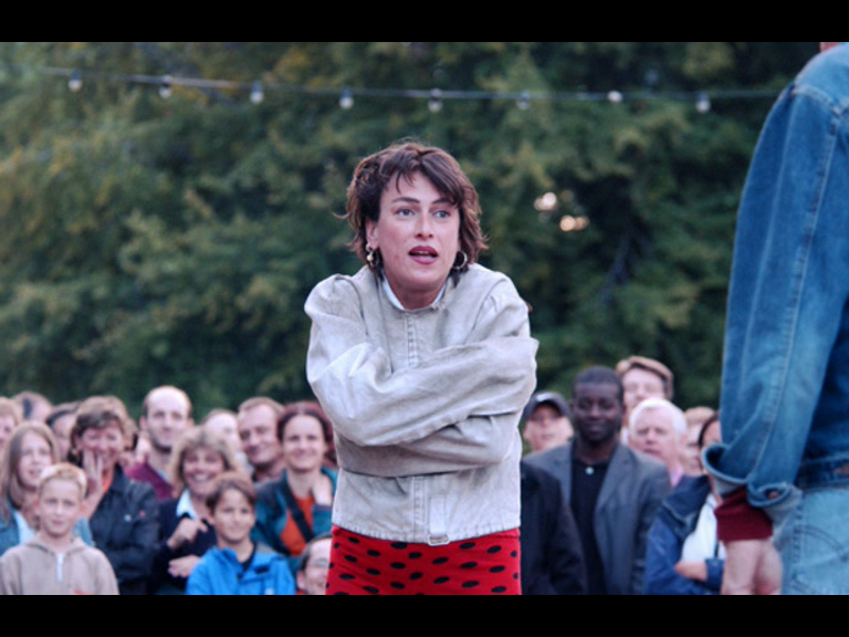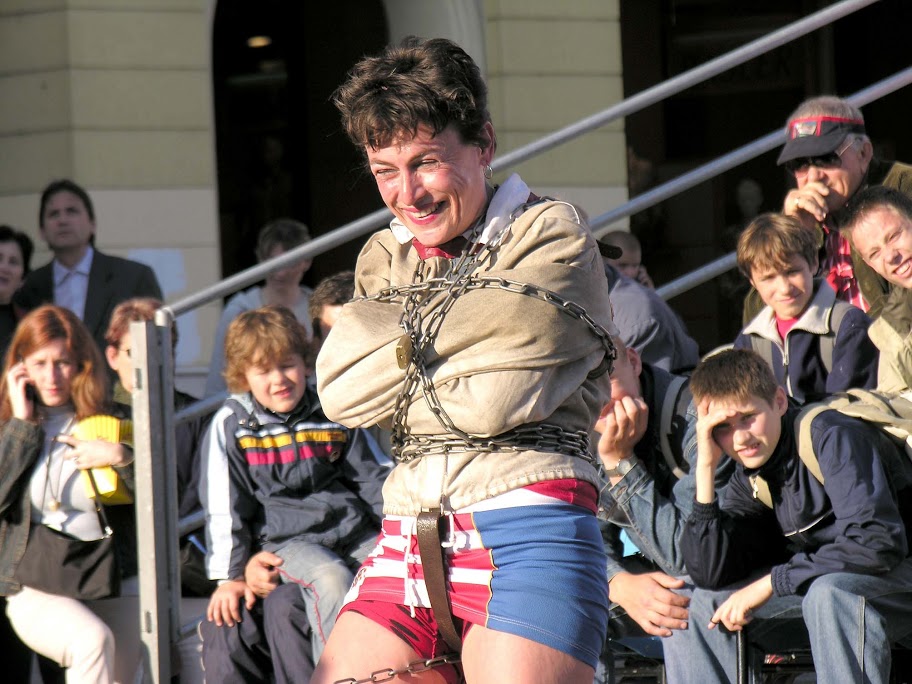 Miss Minetti: das ist lebendiges Straßentheater, welches den Zuschauer durch ihren Humor gefangen nimmt.