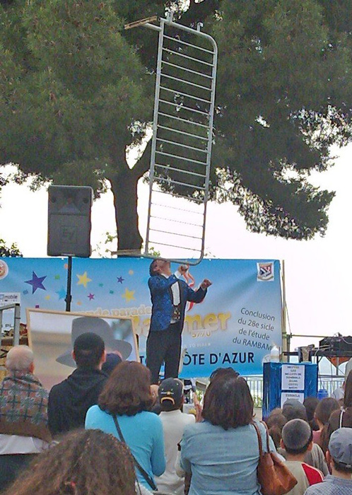 Mike Ghavanloo, der Schausteller aus der „Baie des Anges“, wird Sie mit seinen erstaunlichen fakirischen Fähigkeiten als Schwertschlucker und unglaublichen Balance-Darbietungen ins Staunen versetzen.